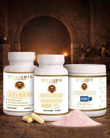 The Focus Stack combines NAD+, Lion’s Mane, and Hydration to support clarity, focus, and sustained energy — without stimulants. Designed for long workdays, training days, and everything in between.