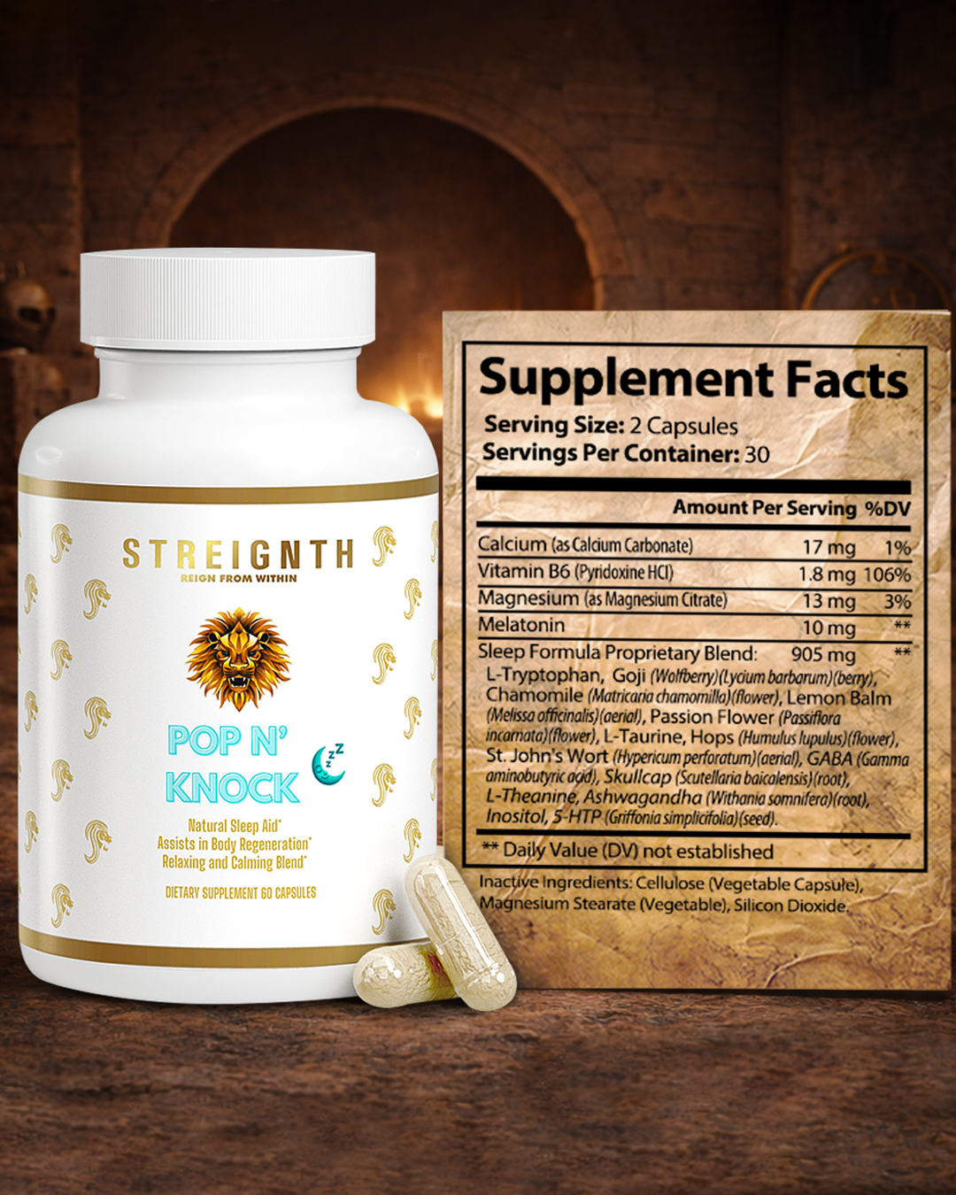 Unwind and rejuvenate with Pop N’ Knock, your go-to natural sleep aid. Packed with a calming blend of Chamomile, Magnesium, GABA, and L-Tryptophan, this formula promotes deep relaxation, assists in body regeneration, and helps you wake up refreshed. Perfect for anyone looking to improve sleep quality, ease stress, and support nighttime recovery.