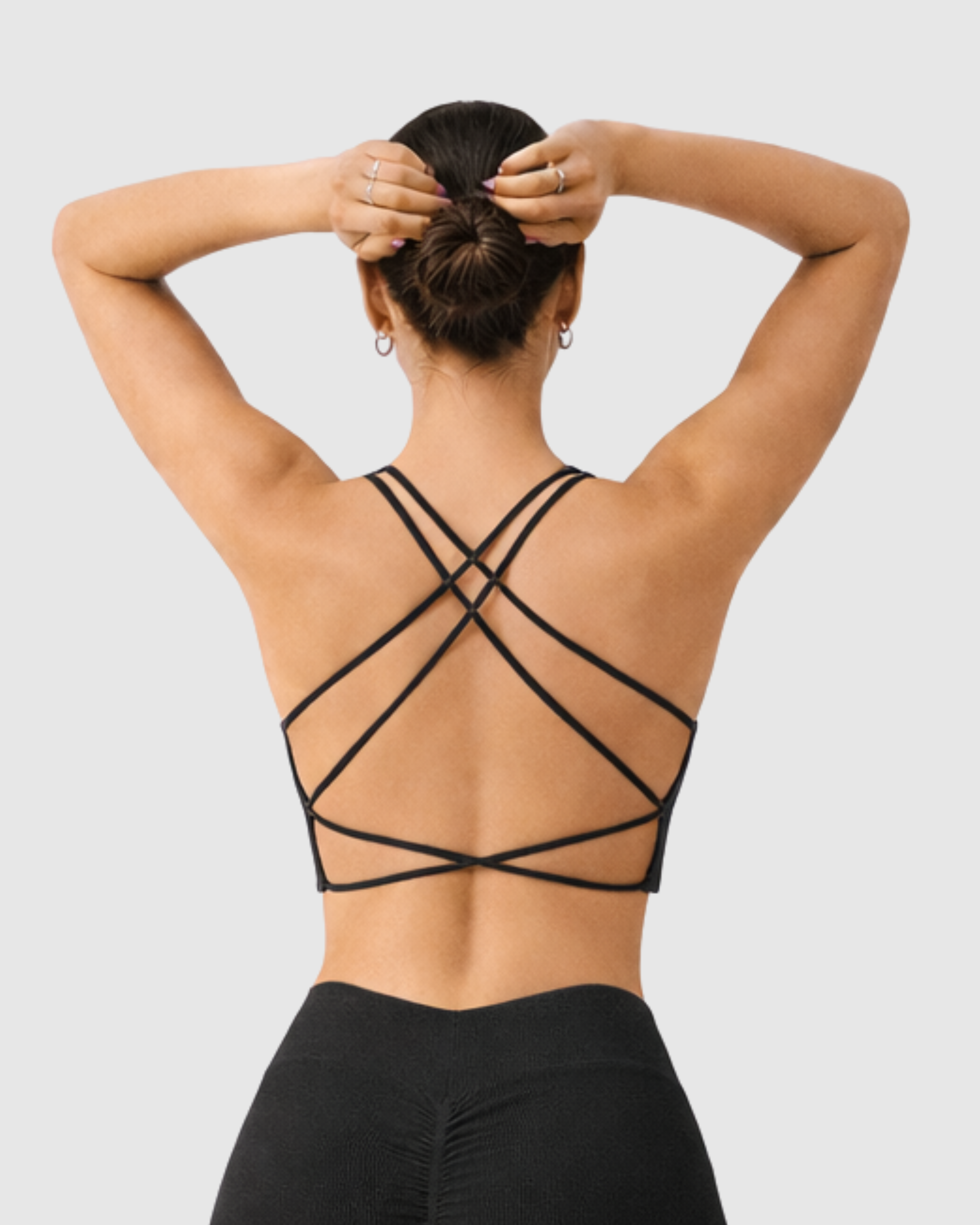 Freedom to move with an elegant open-back cross-strap design